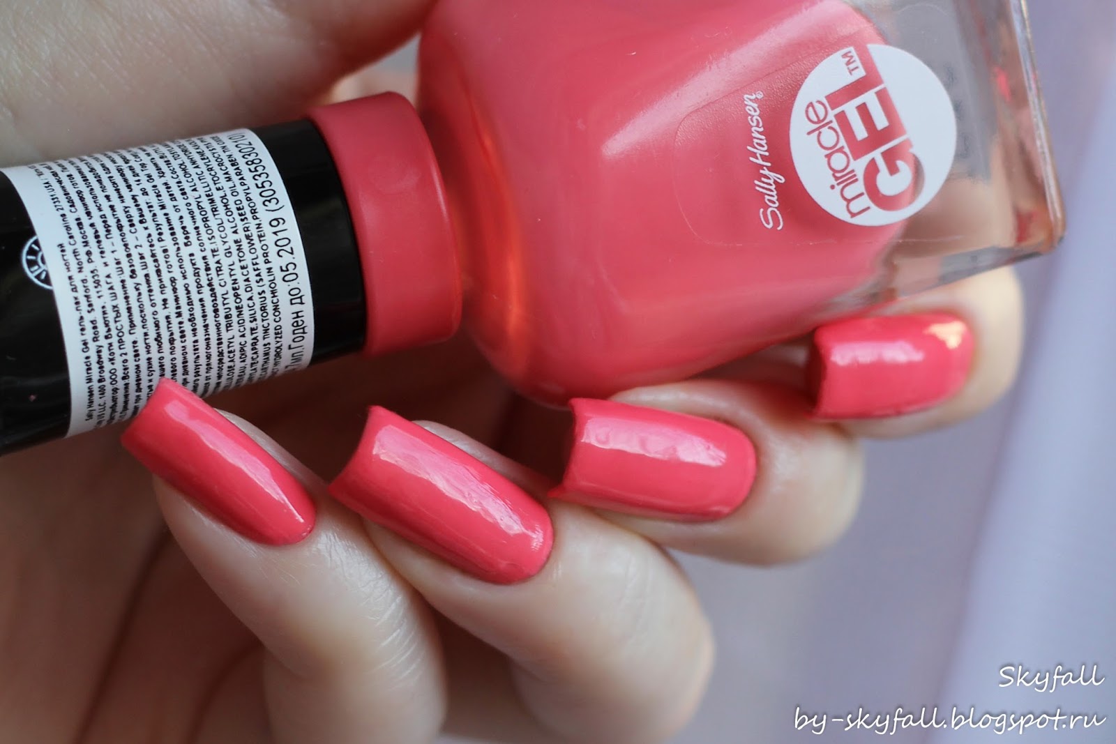 Sally Hansen Miracle Gel 210 Pretty Piggy - цвет молодого поросенка. Вообще-то конечно, это лососевый или креветочный, но название оттенка позволяет с чистой совестью называть мне его поросенком) При ярком освещение из цвета вытягиваются розовые нотки и лак даже немного неонит. Именно так он наиболее выигрышно смотрится.